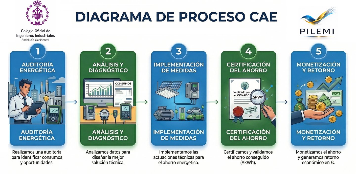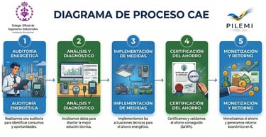 Un CAE es un documento oficial que certifica un ahorro energético conseguido tras la implantación de una actuación de eficiencia. Este ahorro puede transformarse en valor económico mediante su venta dentro del sistema CAE.